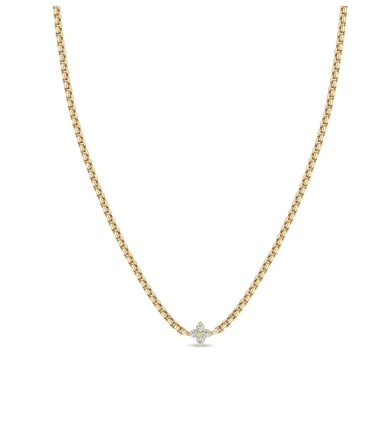 14K GOLD 2MM QUAD PRONG SET SMALL BOX CHAIN