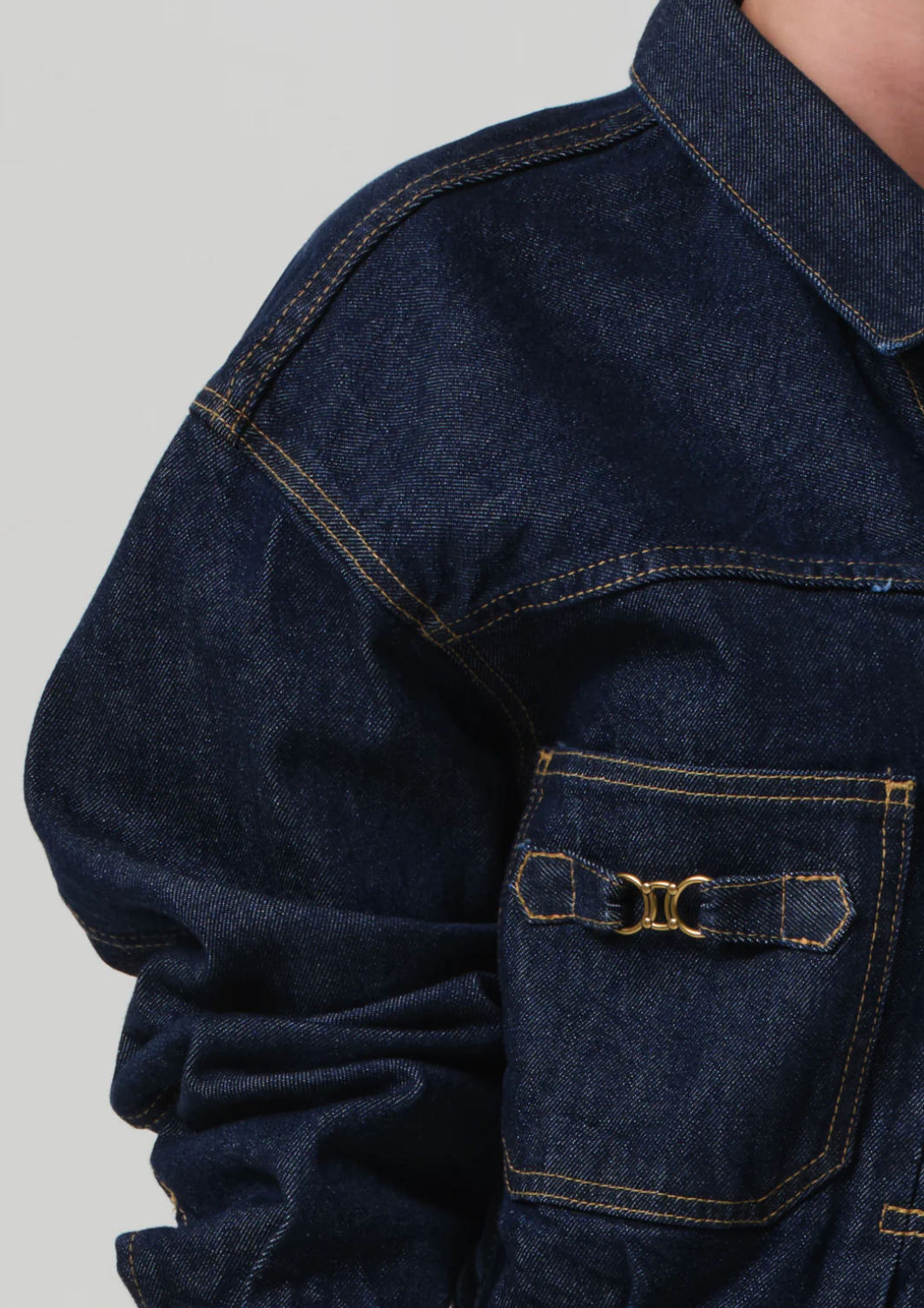 The Alma Jacket offers a refined take on classic denim, cut from comfort stretch regenerative cotton with a soft, broken-in hand. The tailored silhouette is finished with equestrian-inspired horsebit hardware for a polished edge.