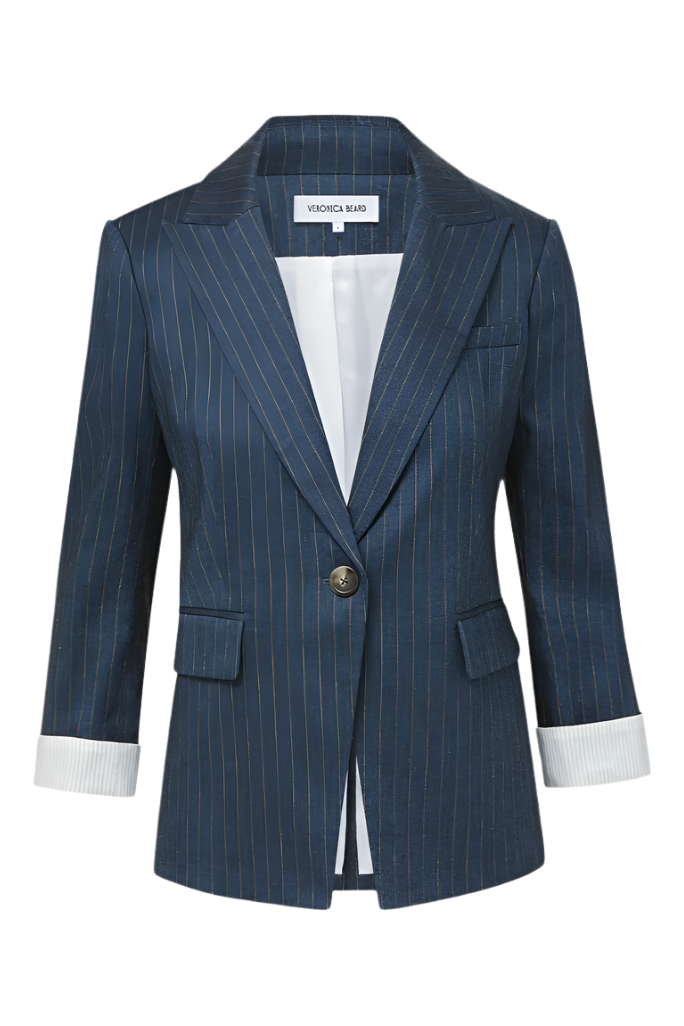 Obie is a refined single-breasted jacket, crafted from premium Italian stretch linen in navy and finished with white pinstripes.